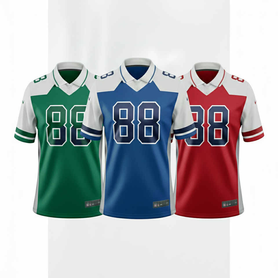 เสื้อฟุตบอลอเมริกันแบบสั่งทำสำหรับผู้ชาย - เสื้อแข่งแบบมีปกผ้าตาข่าย - ชุดทีมพร้อมสำหรับการพิมพ์แบบซับลิเมชั่น