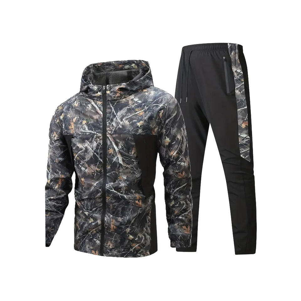 เสื้อมีฮู้ดมีซิปลายพรางสำหรับผู้ชายเสื้อผ้าสำหรับใส่ไปยิมในฤดูหนาวแบบลำลองมีแถบด้านข้างคอเสื้อ
