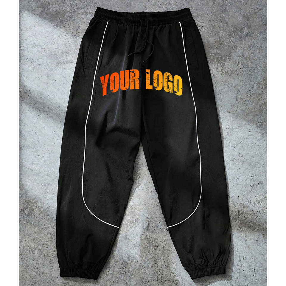 กางเกงวอร์มผ้าแคนวาสแบบสั่งตัดสำหรับผู้ชาย ป้องกันไฟฟ้าสถิตย์ กางเกงขายาวทรงหลวม แต่งแถบข้างลายปะติด สไตล์ลำลองแบบสมาร์ทแคชวล