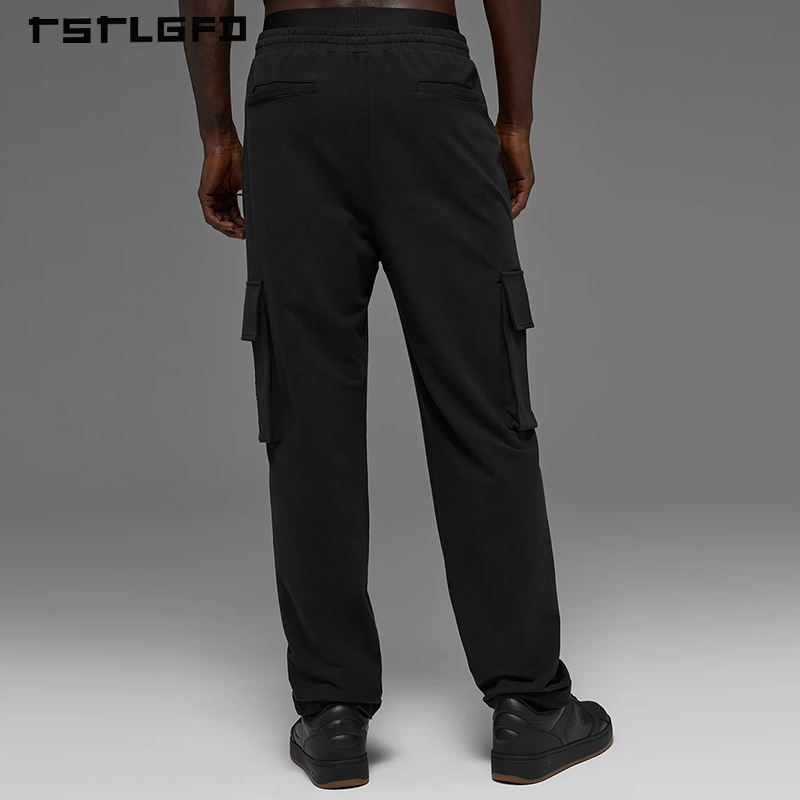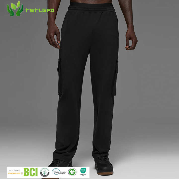กางเกงวอร์มคาร์โก้ผู้ชายแบบสั่งทำพิเศษ ผ้าผสมเส้นใยแบบวงปิด กระเป๋าข้างแบบมีฝาปิด ขอบเอวยางยืด เอวสองชั้น สไตล์สตรีทแวร์