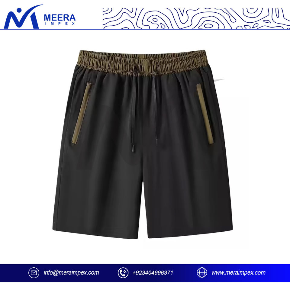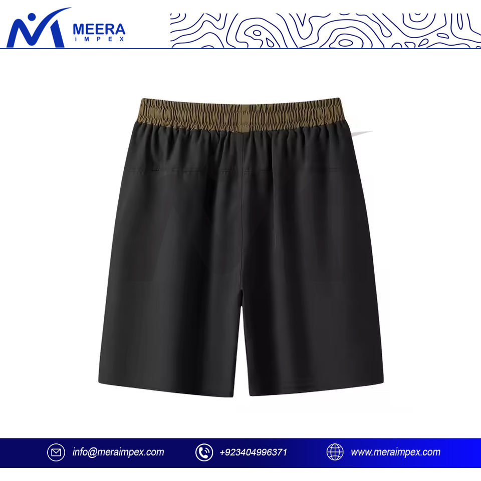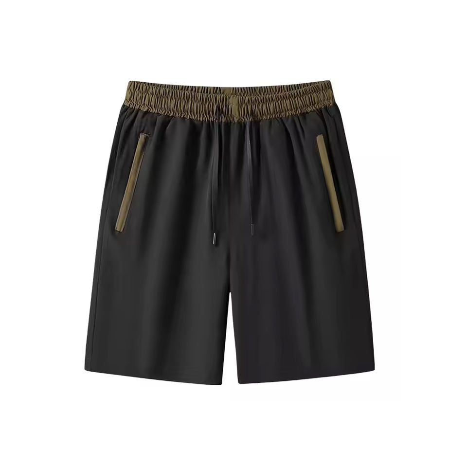 กางเกงขาสั้นผู้ชายน้ำหนักเบามีกระเป๋าด้านในสีดำล้วนมีเชือกผูกเอว