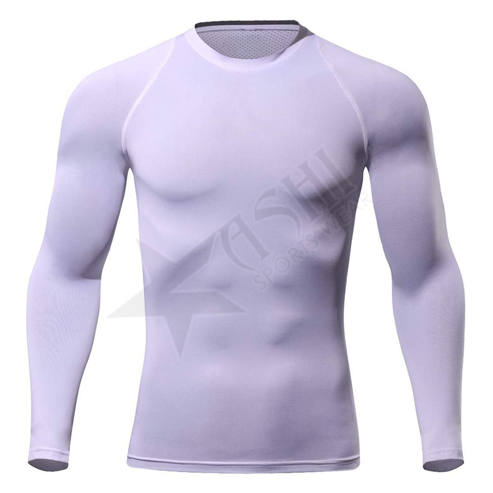 เสื้อรัดรูปแขนยาวสำหรับผู้ชายเสื้อกีฬาแบบสั่งตัดสำหรับฤดูร้อนกีฬาวิ่ง MMA ขายส่งผ้าสแปนเด็กซ์สไตล์สปอร์ต