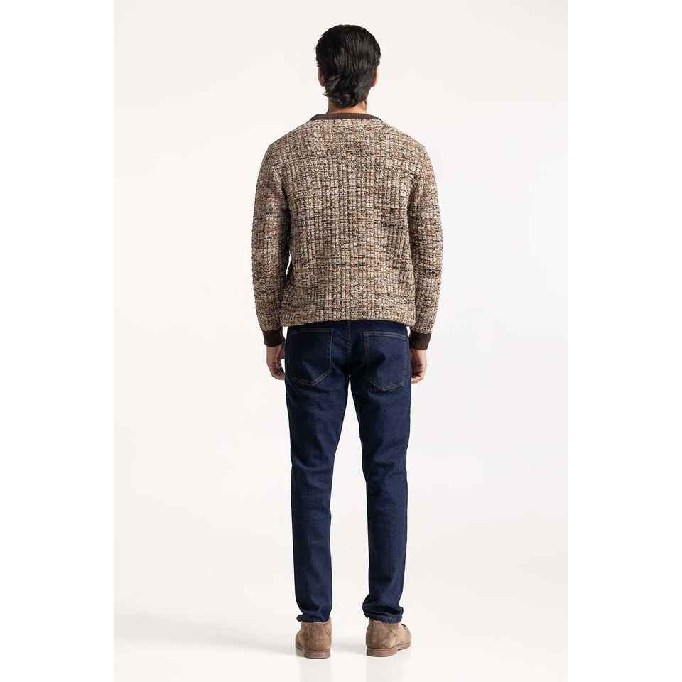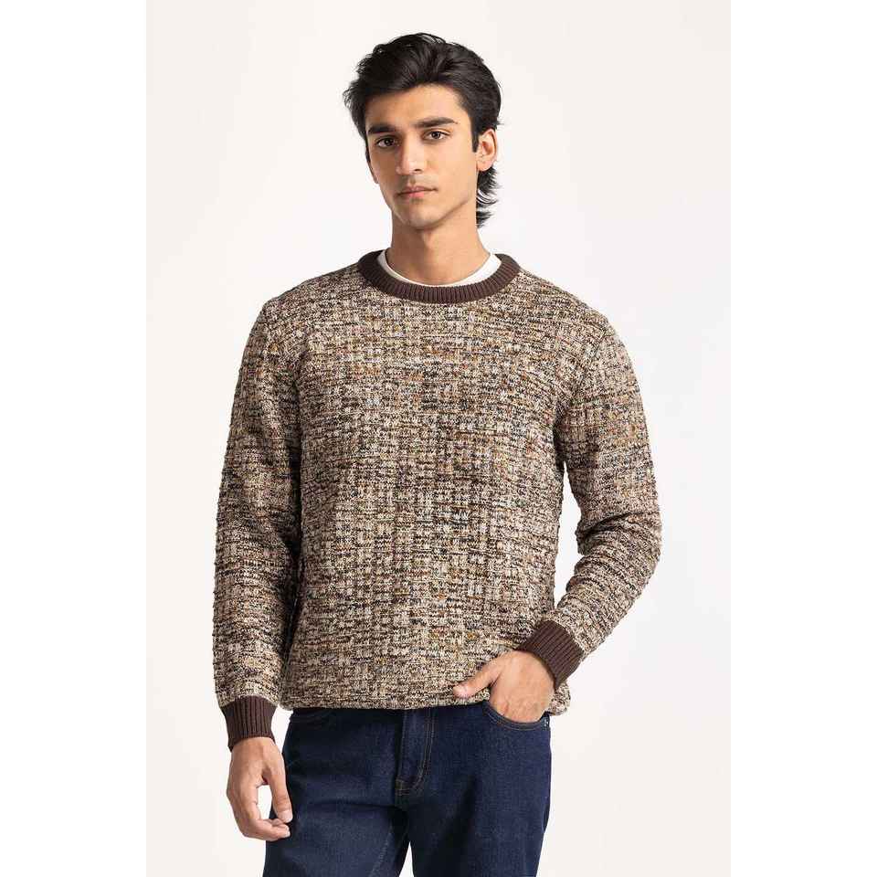 เสื้อสเวตเตอร์คอกลมแบบมีฮู้ดสำหรับผู้ชาย งานถักลายพิมพ์ตกแต่งสำหรับฤดูใบไม้ร่วง รุ่น MN-SWT-WS24-069