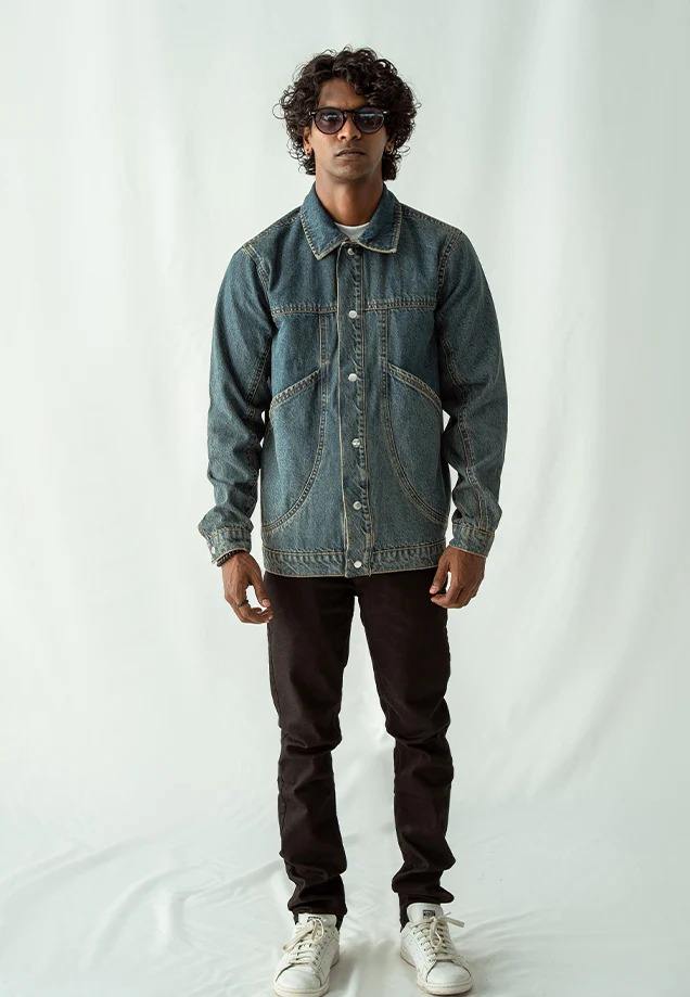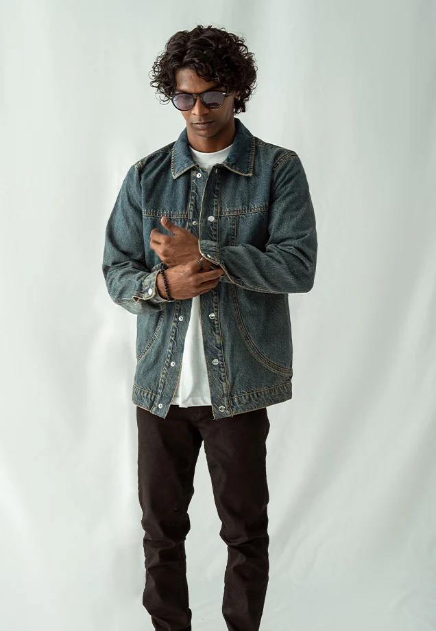 แจ็กเก็ตยีนส์สำหรับผู้ชายแจ็กเก็ตยีนส์สีพื้นลำลองแฟชั่นสไตล์สตรีทแวร์ทันสมัย