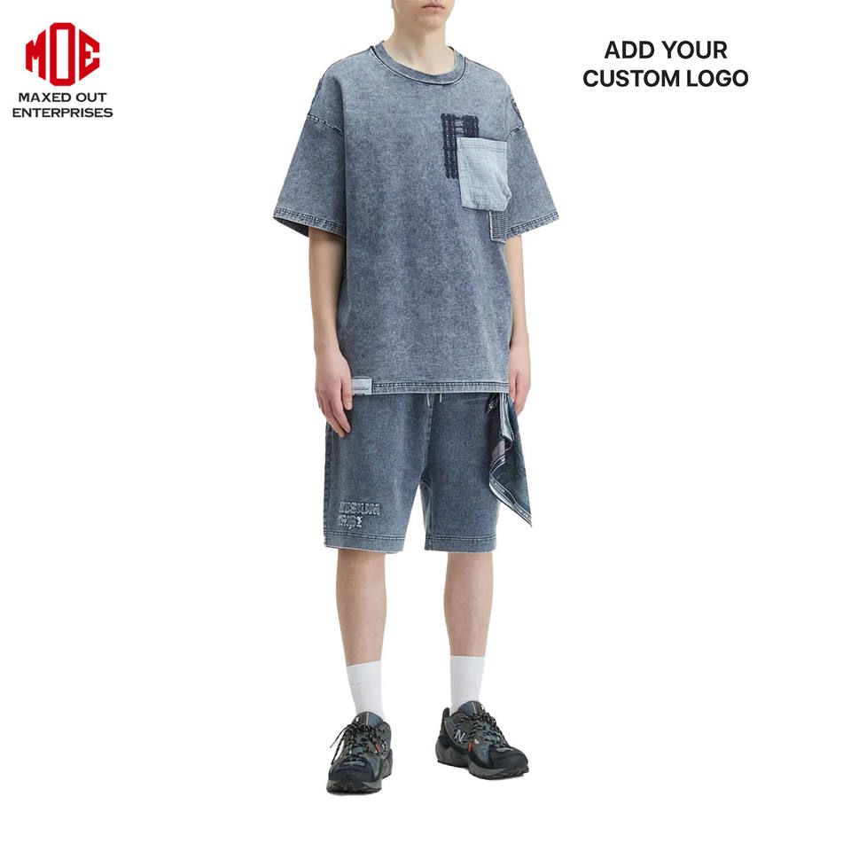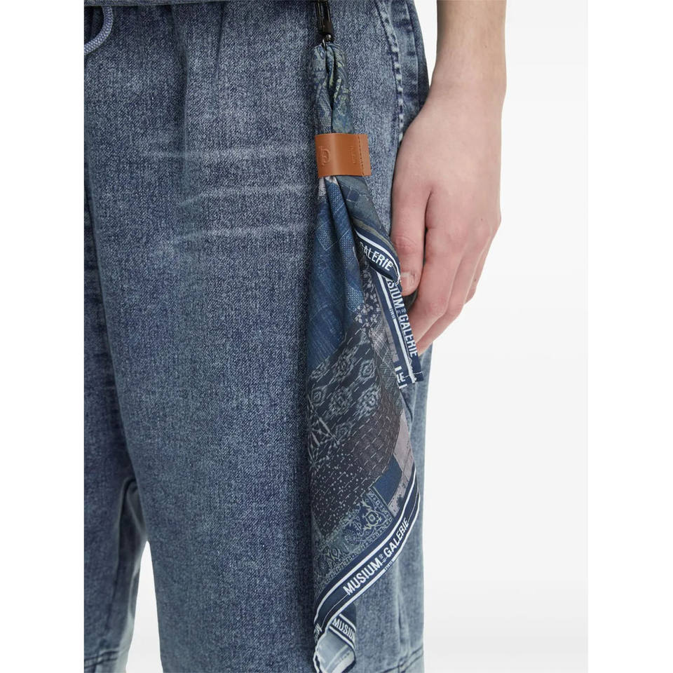 กางเกงขาสั้นผ้ายีนส์แบบปรับแต่งเองได้สำหรับผู้ชายเชือกผูกลำลองกับผ้าพันคอรายละเอียดชุดแนวสตรีทสวมใส่สบายใส่สบาย