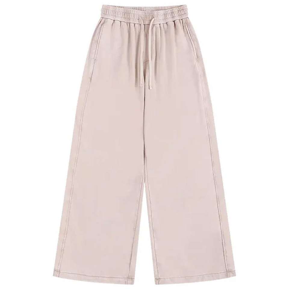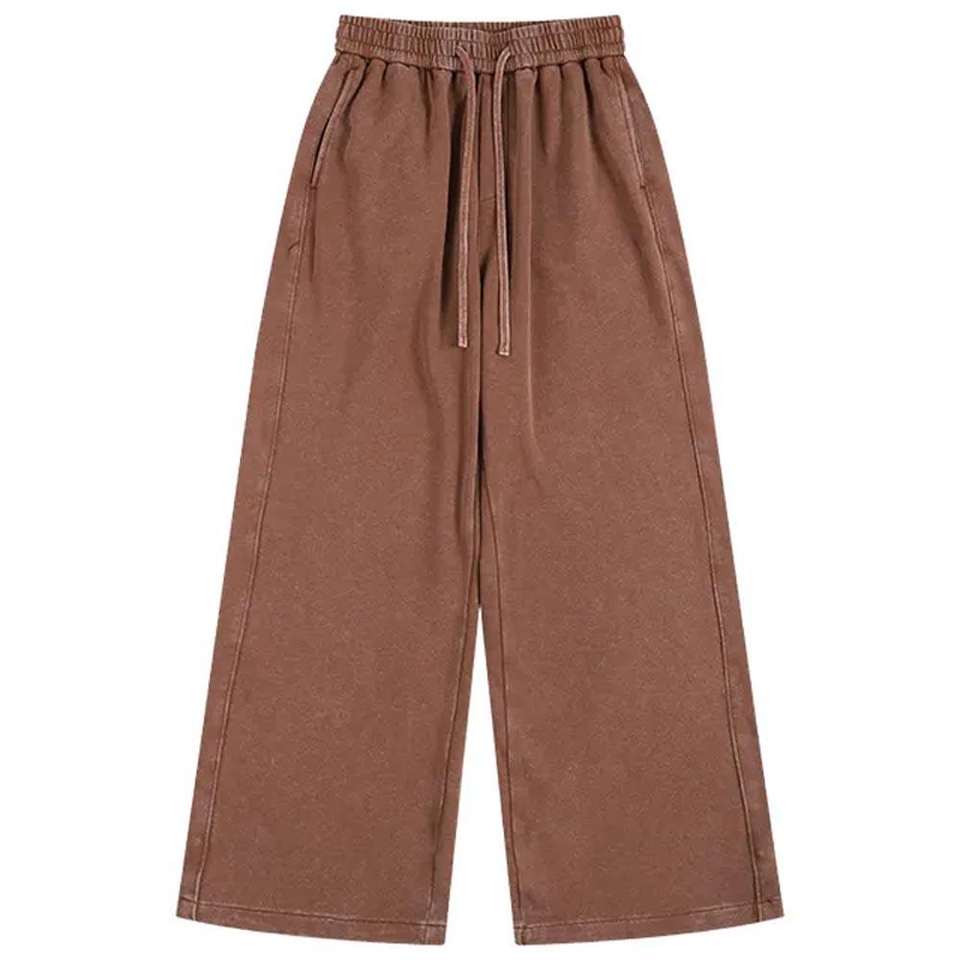กางเกงวอร์มทรงตรงผ้าคอร์ดูรอยฟลีซทรงขาบานสไตล์วินเทจคุณภาพสูงสำหรับผู้ชาย ปักลายเอวกลาง ซักแบบสโตนวอช