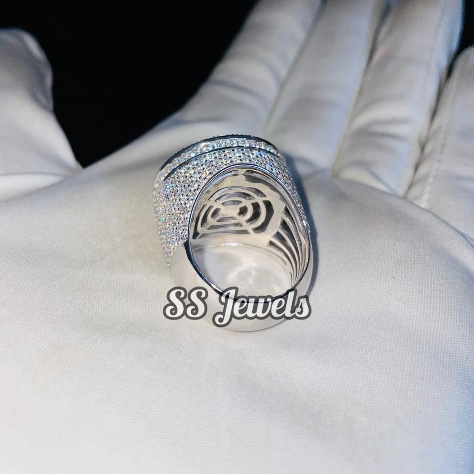 แหวนแชมป์ฮิปฮอปแบบกำหนดเองของผู้ชาย925เงินโรเดียมชุบแข็งเต็มที่ VVS Moissanite 25g หยินหยางสุดๆ
