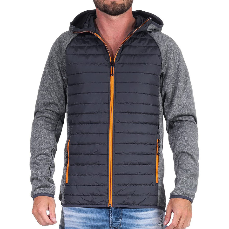 เสื้อแจ็คเก็ตบุผ้านวมกันลมกันน้ำสำหรับผู้ชาย แบบมีฮู้ด วัสดุไนลอน/โพลีเอสเตอร์ สีตามสั่ง โลโก้ด้านหน้า ไซส์ใหญ่ บริการ OEM
