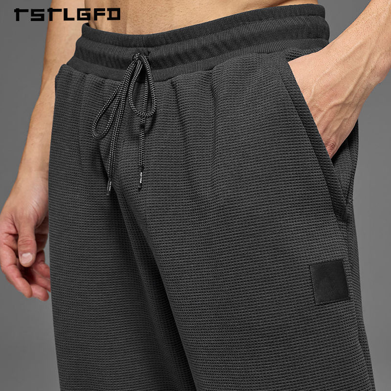 กางเกงจ็อกเกอร์ผู้ชายแบบสั่งตัด ผ้าถักเนื้อสัมผัสพิเศษ เป็นมิตรต่อสิ่งแวดล้อม กางเกงวอร์มเอวยางยืดพร้อมปลายขาจั๊มพ์ กางเกงลำลองผู้ชาย