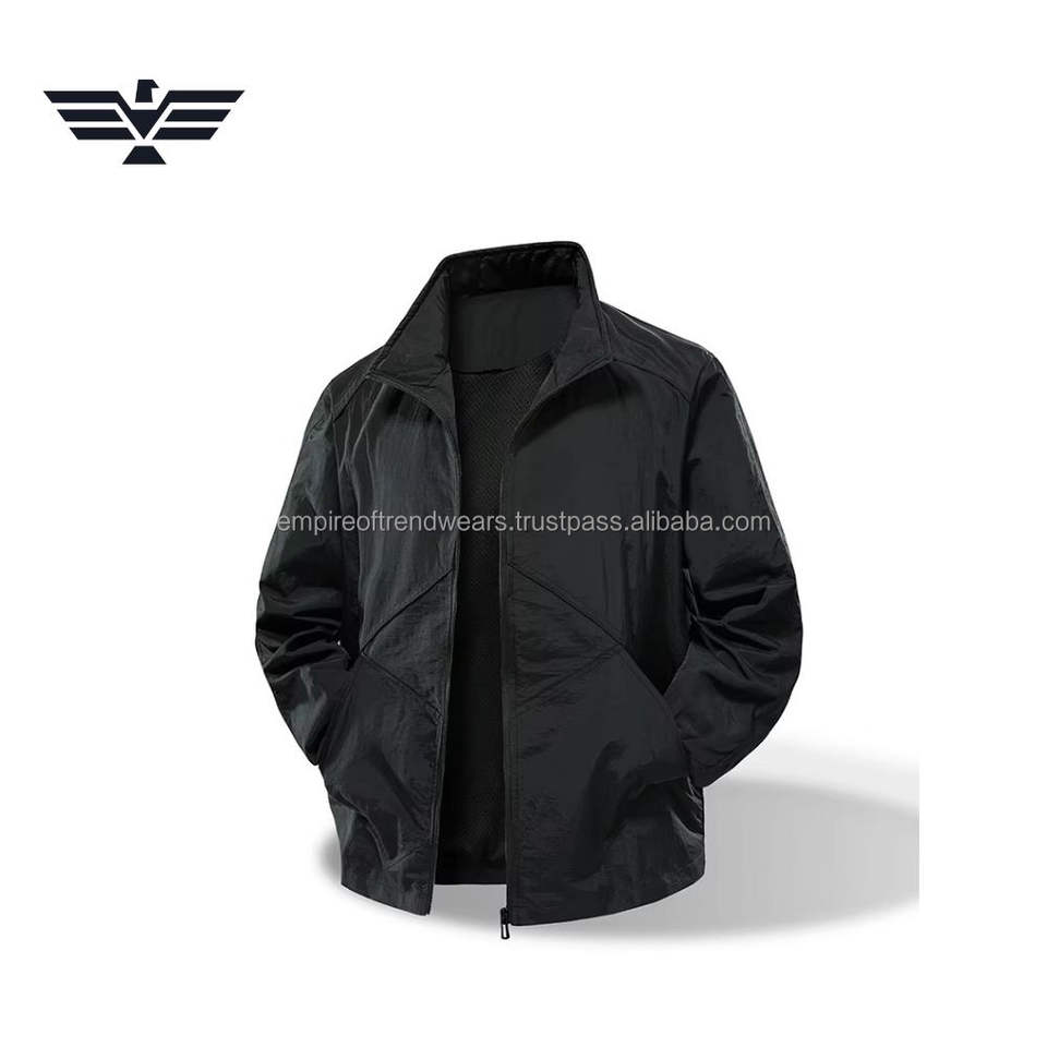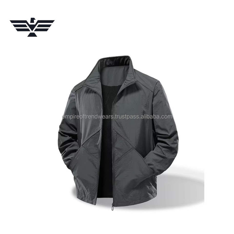 เสื้อแจ็คเก็ตกันลมแบบมีปกตั้งสำหรับผู้ชาย สกรีนโลโก้ได้ ผ้าแคนวาสบางเบา น้ำหนักเบา สวมใส่กลางแจ้ง แบบซิป ลำลอง กันลม ไซส์ XS
