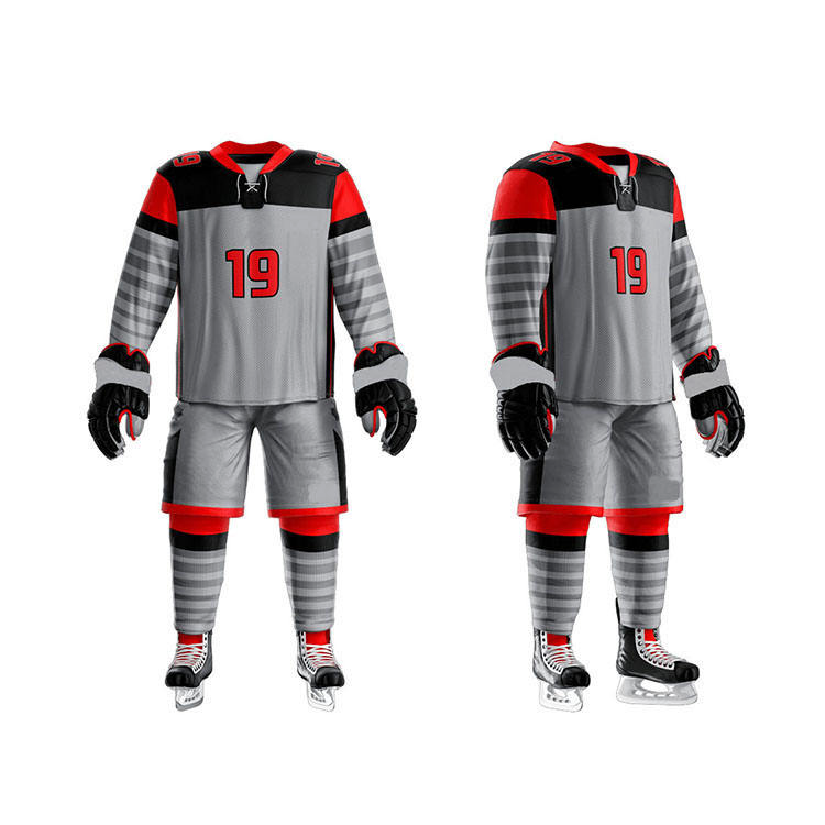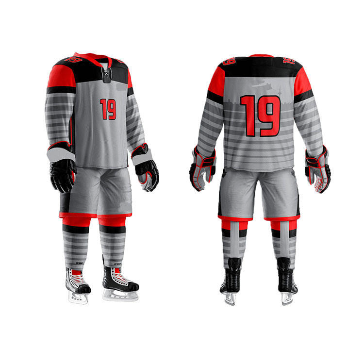 ชุดเสื้อเจอร์ซีย์สำหรับผู้ชายชุดเสื้อฮ็อกกี้น้ำแข็งพิมพ์ลายซับลิเมชันส่วนตัวสำหรับผู้ชายเสื้อเจอร์ซี่พิมพ์โลโก้ตามสั่ง