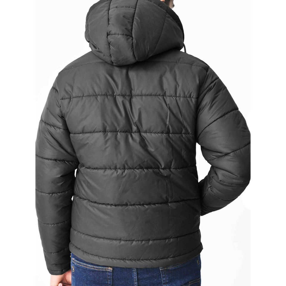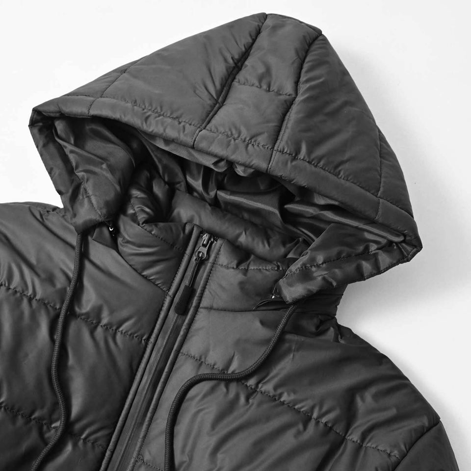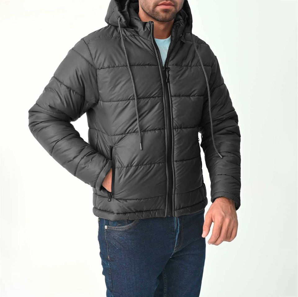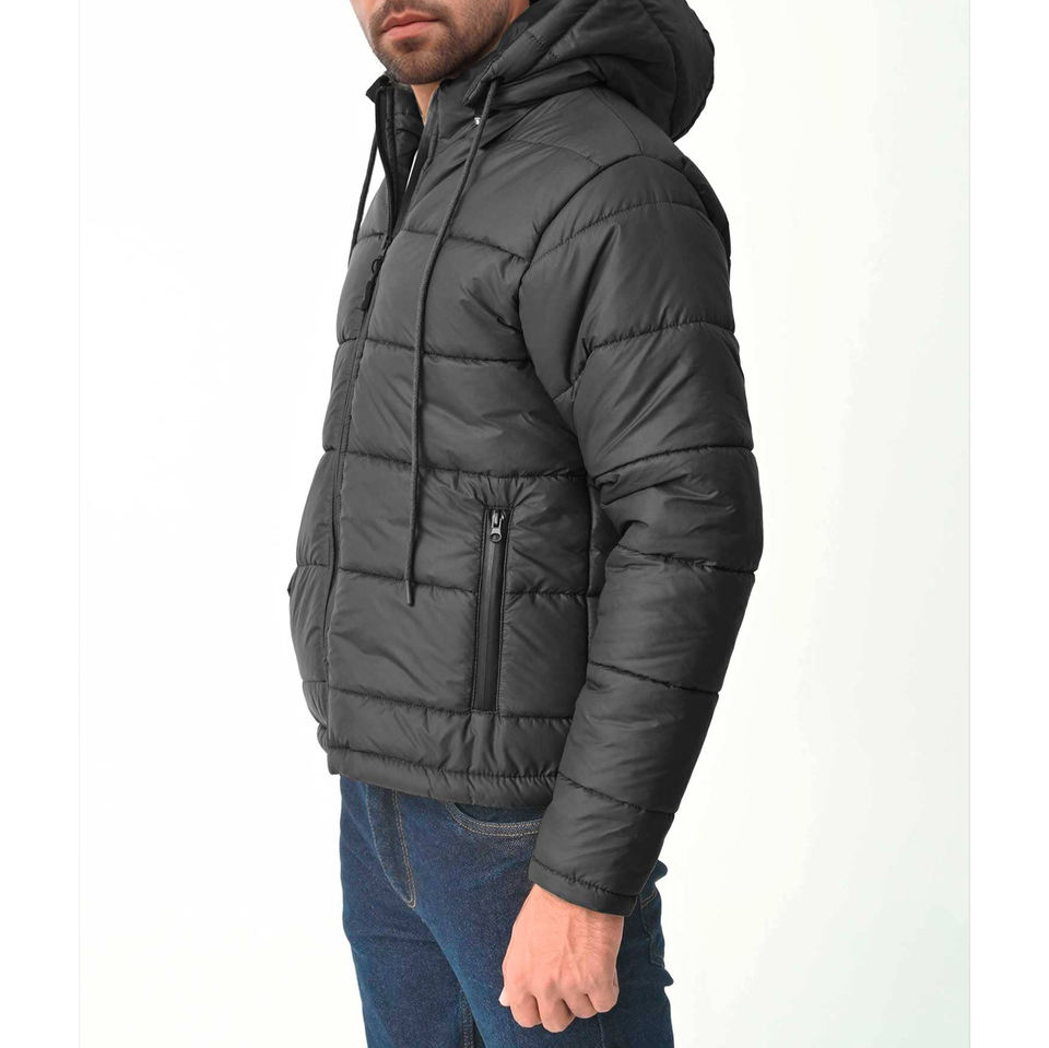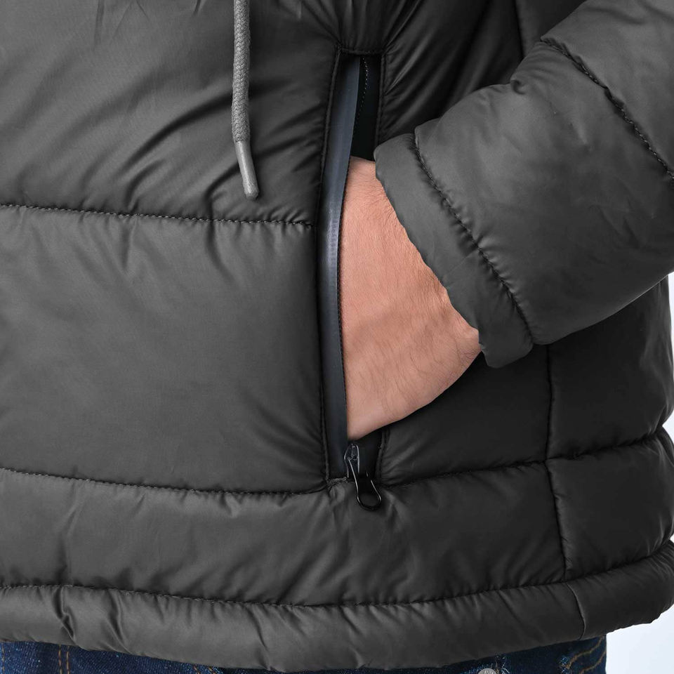 เสื้อแจ็กเก็ตขนเป็ดสำหรับผู้ชาย, มีฮู้ดปกตั้งมีกระเป๋ามีซิปสีดำสำหรับใส่เพื่อให้ความอบอุ่นกลางแจ้งโลโก้ออกแบบได้ตามต้องการ