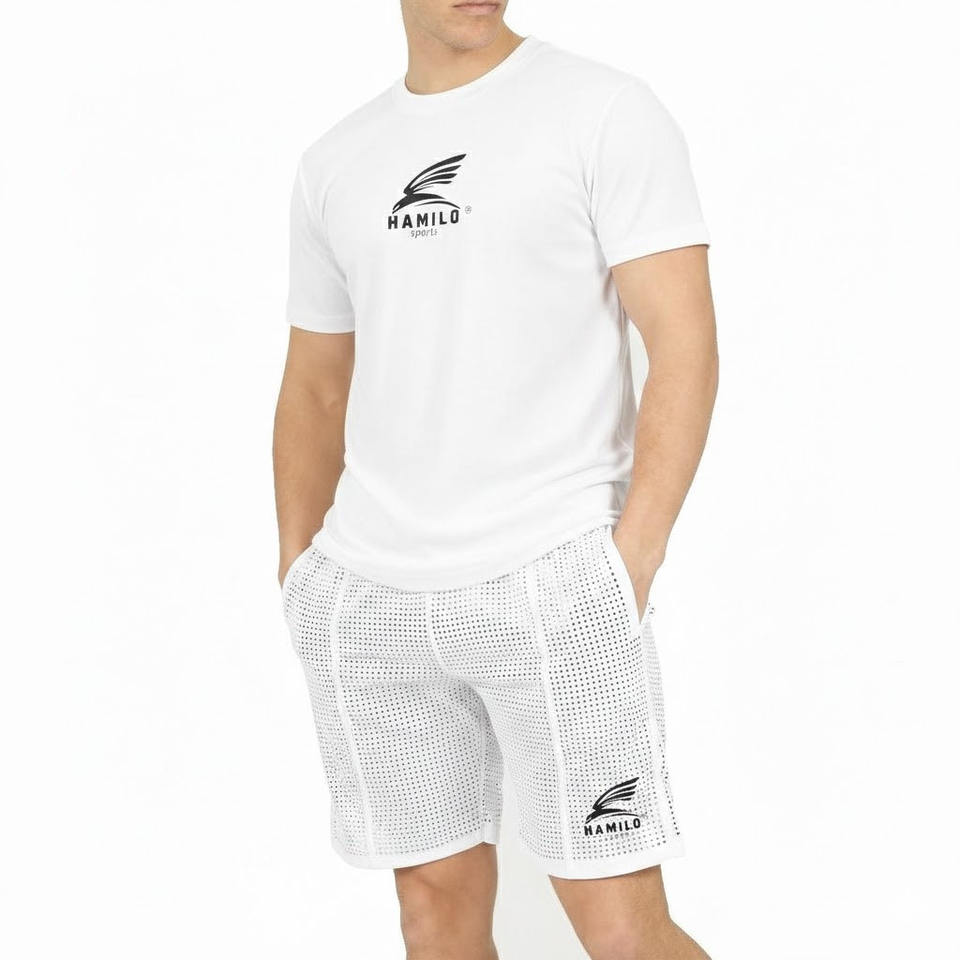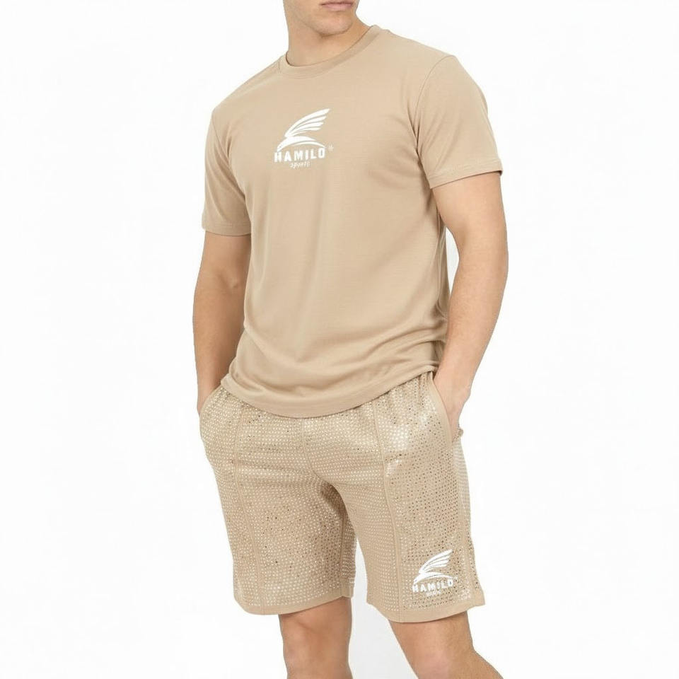 ชุดเซ็ตสองชิ้นสำหรับผู้ชาย ตัดเย็บตามสั่ง เนื้อผ้านุ่ม แห้งเร็ว แบบลำลอง ประกอบด้วยเสื้อยืดพิมพ์ลายและกางเกงขาสั้น มีจำหน่ายแล้ว