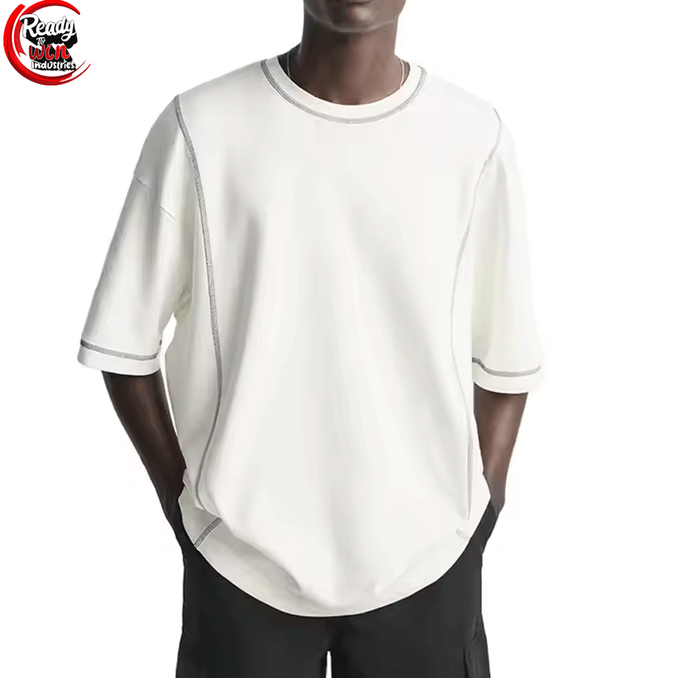 เสื้อยืดคอกลมสะพายไหล่สำหรับผู้ชายผ้าคอตตอน100% 300 GSM เสื้อโอเวอร์ไซส์เนื้อผ้าระบายอากาศได้ดีน้ำหนักเบา