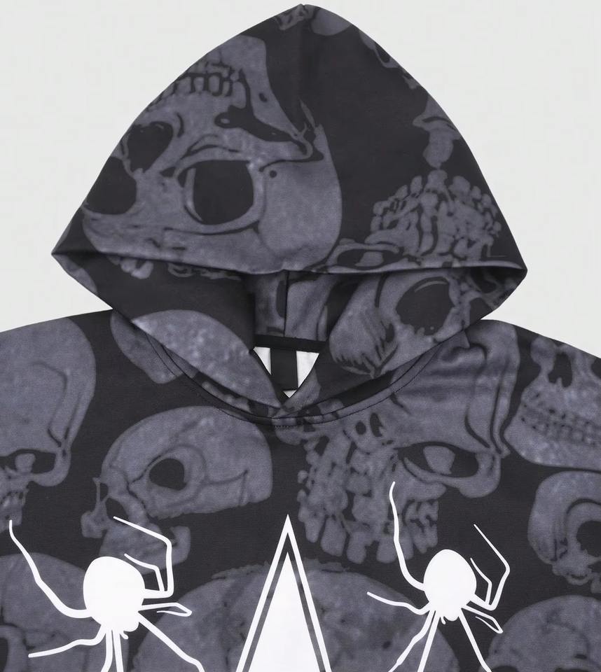 เสื้อฮู้ดดี้ผู้ชายแบบสั่งทำพิเศษ ทรงโอเวอร์ไซส์ พิมพ์ลายดาวห้าแฉกและแมงมุม แขนยาวทรงหลวม ดีไซน์ไหล่ตก