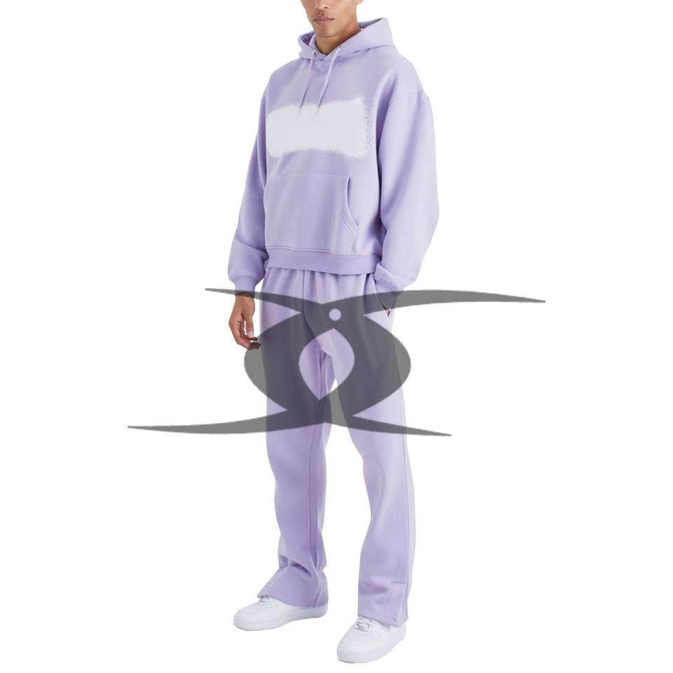 ชุดเซ็ตเสื้อฮู้ดและกางเกงวอร์มทรงบานผ้าฝ้ายเฟรนช์เทอร์รี่สำหรับผู้ชาย ไซส์พลัส สไตล์สตรีทแวร์ ล้างสีแบบแอซิดวอช เหมาะสำหรับฤดูหนาว