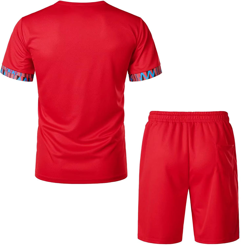 ชุดวิ่งระบายอากาศสำหรับผู้ชายชุดเดินแบบสตรีทแขนสั้นพร้อมกางเกงขาสั้นและชุดวอร์มชุดกีฬาฤดูร้อนสำหรับผู้ชาย