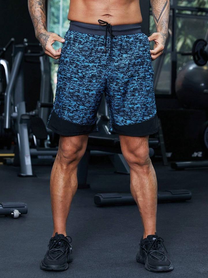 กางเกงขาสั้นตาข่ายโพลีเอสเตอร์สำหรับผู้ชายพิมพ์โลโก้แบบสปอร์ตออกแบบได้ตามต้องการเป็นมิตรกับสิ่งแวดล้อมลายพื้นใส่ออกกำลังกายกันรอยยับระบายอากาศได้