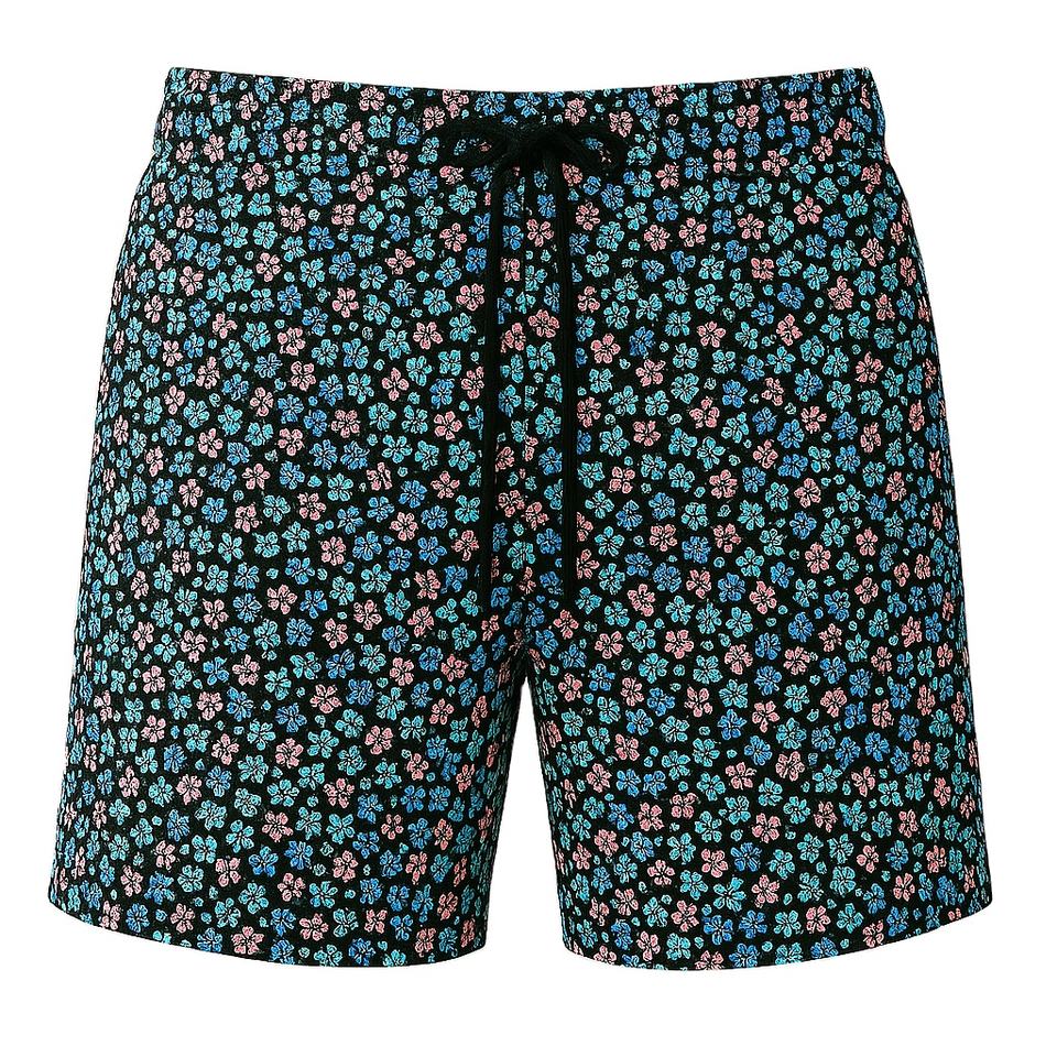 กางเกงว่ายน้ำขาสั้นของผู้ชายแบบแห้งเร็วพิมพ์ลายดอกไม้กางเกงขาสั้นตาข่ายสไตล์ลำลองสำหรับใช้ในชายหาด