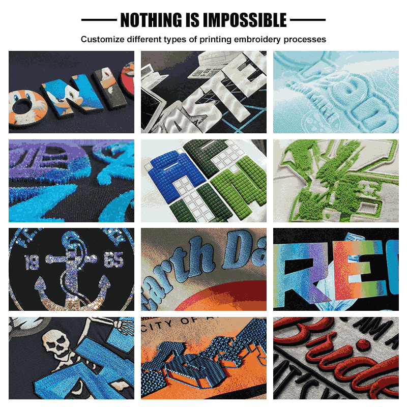 พิมพ์ออกมา, พิมพ์พัฟ, ลายนูน, การพิมพ์แบบถ่ายโอนความร้อน, การพิมพ์แบบดิจิตอล, การพิมพ์สกรีนผ้าไหม