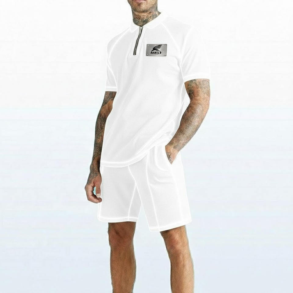 ชุดวอร์มกีฬาฤดูร้อนแบบสั่งพิมพ์ลายสำหรับผู้ชาย ชุดคู่ แห้งเร็ว ระบายเหงื่อได้ดี เสื้อยืดแขนสั้น กางเกงขาสั้น เนื้อผ้านุ่ม สวมใส่สบาย