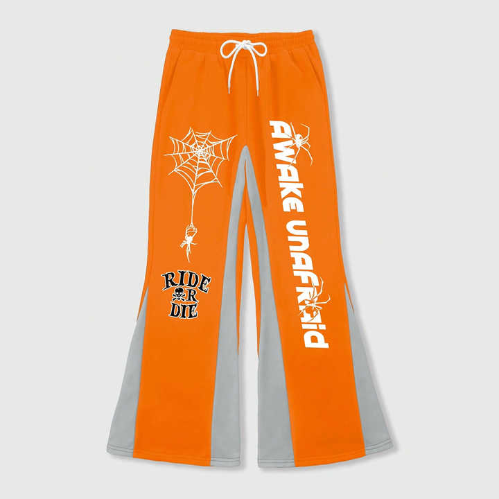 กางเกงวอร์มทรงบานพิมพ์ลายตามสั่งสำหรับผู้ชาย คุณภาพสูง เอวผูกเชือก กางเกงผู้ชายสีล้างแบบคัลเลอร์บล็อกทรงบานสำหรับผู้ชาย