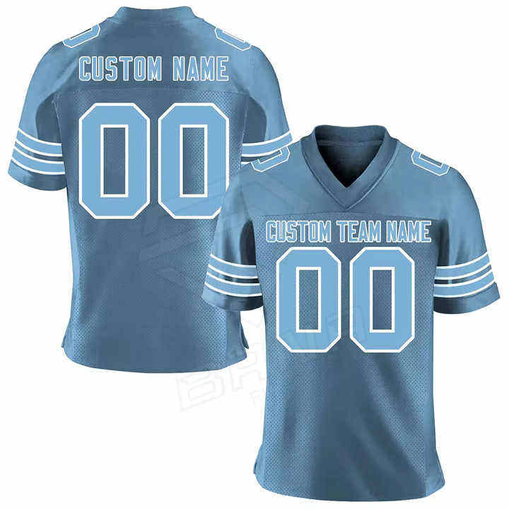 เสื้อฟุตบอลอเมริกันผู้ชายแบบสั่งทำพิเศษ แห้งเร็ว ป้องกันรังสียูวี ผลิตจากโพลีเอสเตอร์/คอตตอน พิมพ์ลายดิจิทัล มีไซส์พลัสสำหรับทีม-ทุกฤดูกาล