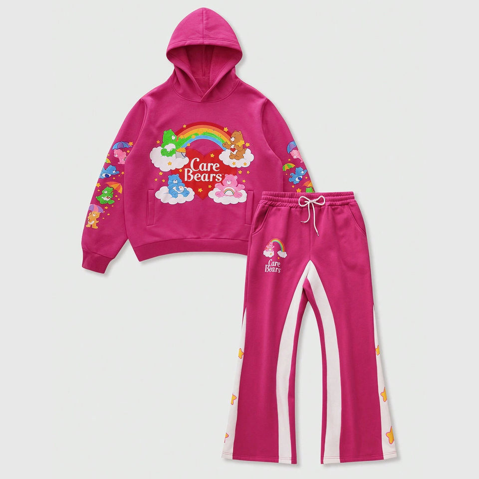 ชุดเสื้อฮู้ดดี้และกางเกงวอร์มพิมพ์ลายเรนโบว์สำหรับผู้ชาย ผ้าฝ้ายฟลีซ 100% ทรงปกติ เหมาะสำหรับแฟชั่นสตรีทแวร์