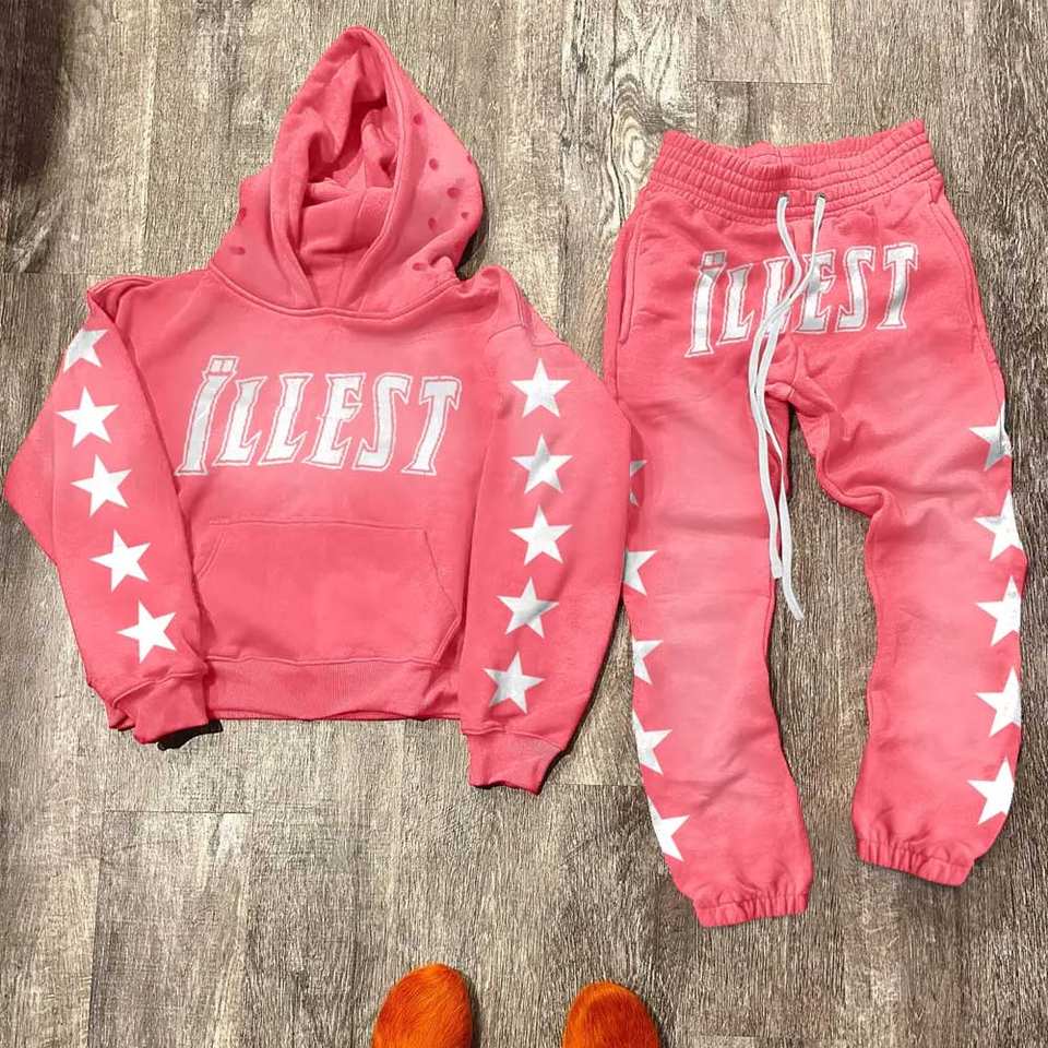 Men's Custom Screen Printing Zipper up Hoodie Sweatshirt and Joggers Pants Flared Trousers Mens Tracksuit Sweatsuit