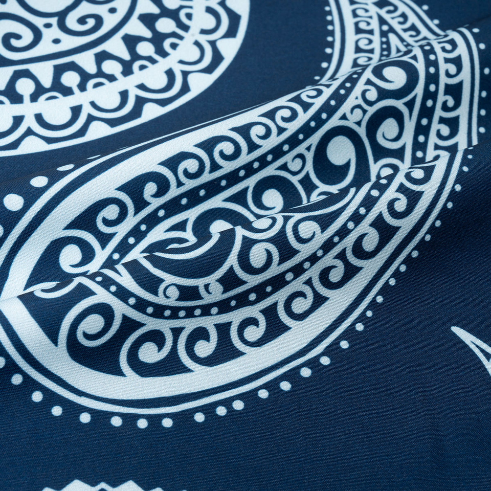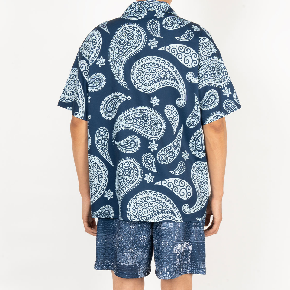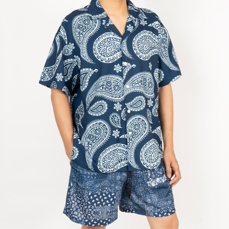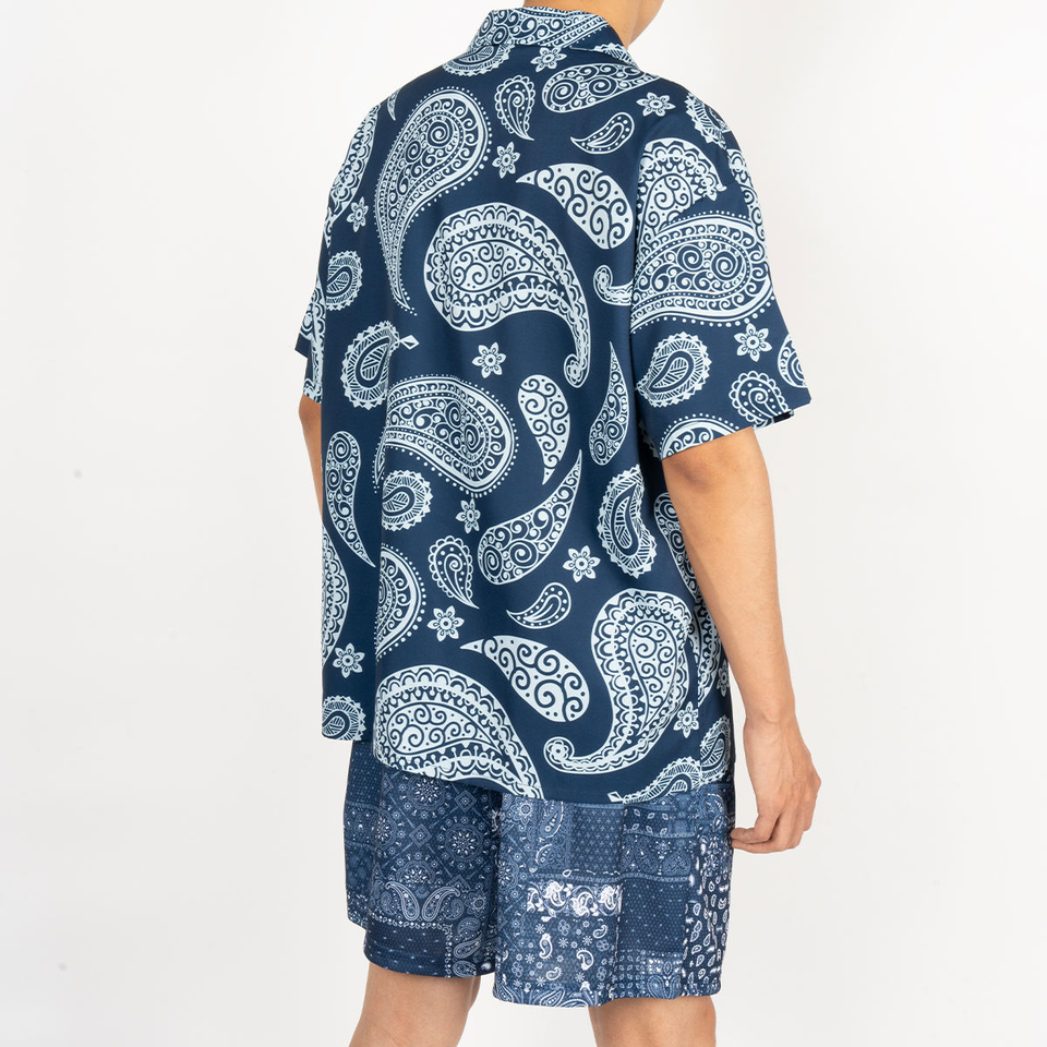 ชุดเสื้อเชิ้ตและกางเกงขาสั้นลำลองสองชิ้นสำหรับผู้ชายชุดเสื้อและกางเกงขาสั้นระบายอากาศลาย Paisley ออกแบบทำจากโพลีเอสเตอร์สำหรับฤดูร้อน
