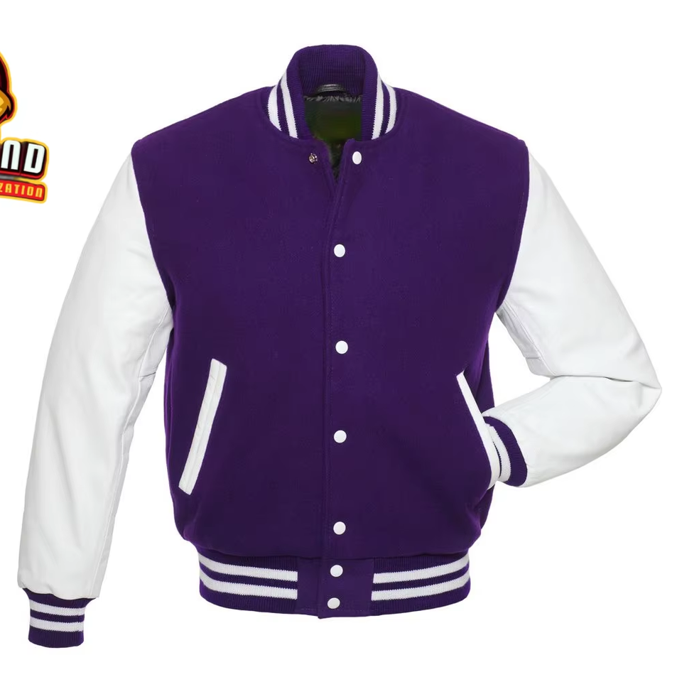 เสื้อแจ็คเก็ตวาร์ซิตี้ผู้ชายแบบสั่งทำพิเศษ คุณภาพพรีเมียม ทำจากผ้าขนสัตว์และแขนหนัง ปรับแต่งได้ด้วยโลโก้และแบรนด์ของคุณเอง