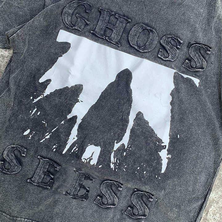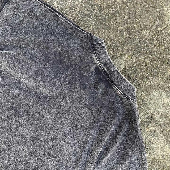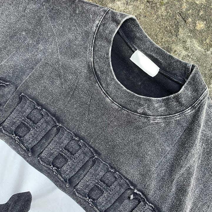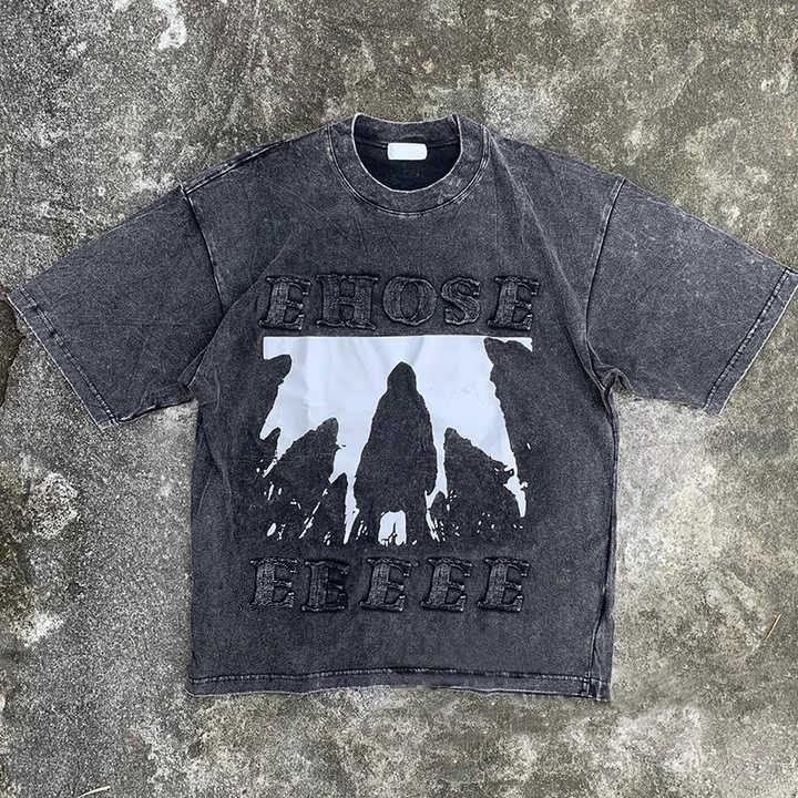 Men's Custom Vintage Letter Embroidery Patch Tee Graphic Hip Hop Acid Wash Regular Fit Screen Printed O-Neck Quick Dry