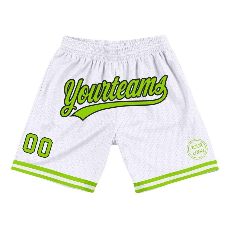 ชุดบาสเก็ตบอลกางเกงขาสั้นสำหรับผู้ชายสีขาวนีออนสีเขียว-ดำแท้ชุดบาสเก็ตบอลสำหรับใส่ในฤดูกาลใหม่