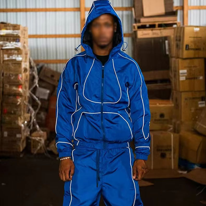 ชุดเสื้อโค้ทกันลมแบบสะท้อนแสงสำหรับผู้ชาย ทำจากไนลอน สำหรับเล่นกีฬาและกิจกรรมกลางแจ้ง