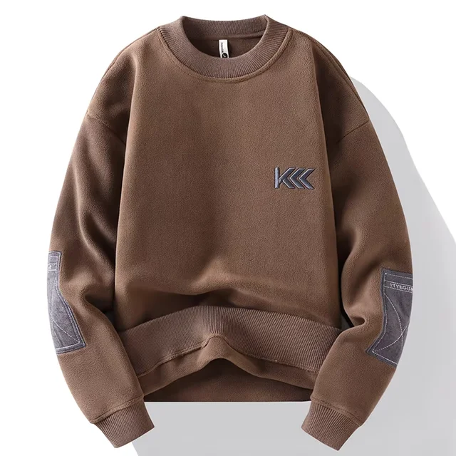 เสื้อวอร์มคอลูกเรือแบบผ่าหน้าสำหรับผู้ชายเสื้อวอร์มผ้าฝ้ายผ้าเทอร์รี่โอเวอร์ไซส์