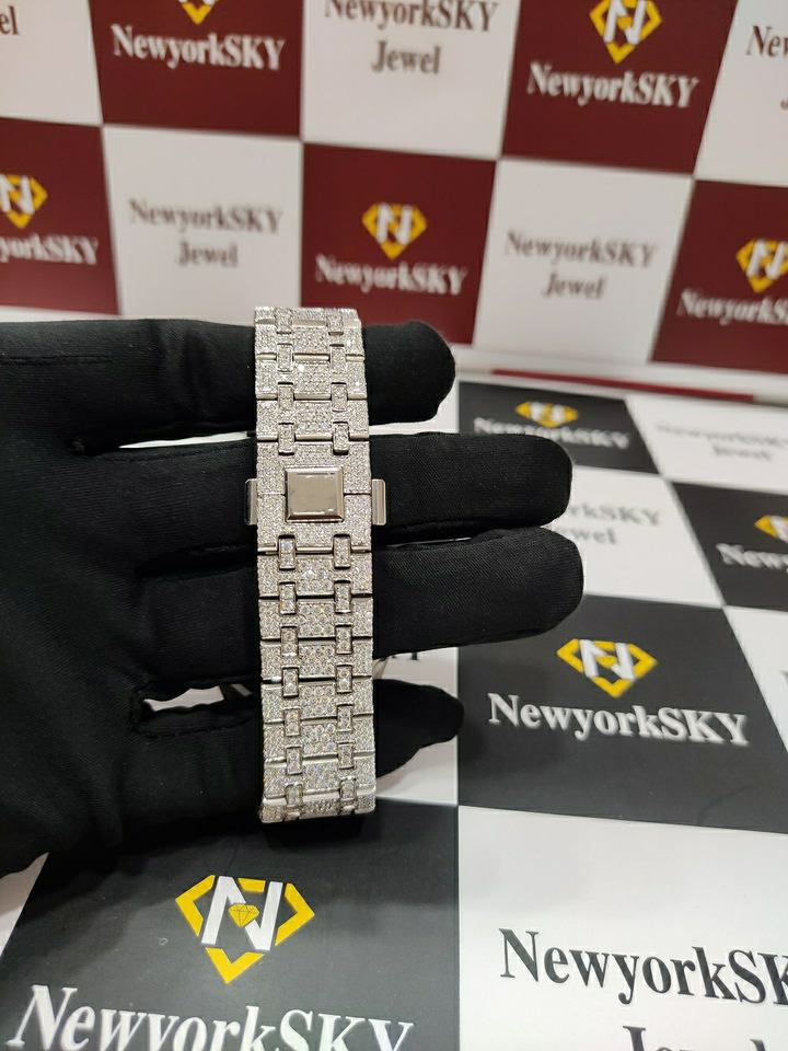 เครื่องประดับที่ปรับแต่งได้ของผู้ชายนาฬิกาข้อมือสแตนเลสทำด้วยมือ VVS Moissanite แก้วเพชรสไตล์เย็น
