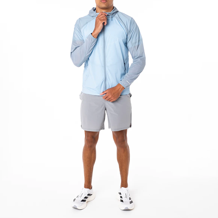 เสื้อกันลมกันน้ำสำหรับผู้ชายเสื้อแจ็คเก็ตกันแดดมีฮู้ดแบบกึ่งซึมผ่านได้พิมพ์โลโก้ออกแบบได้ตามต้องการ