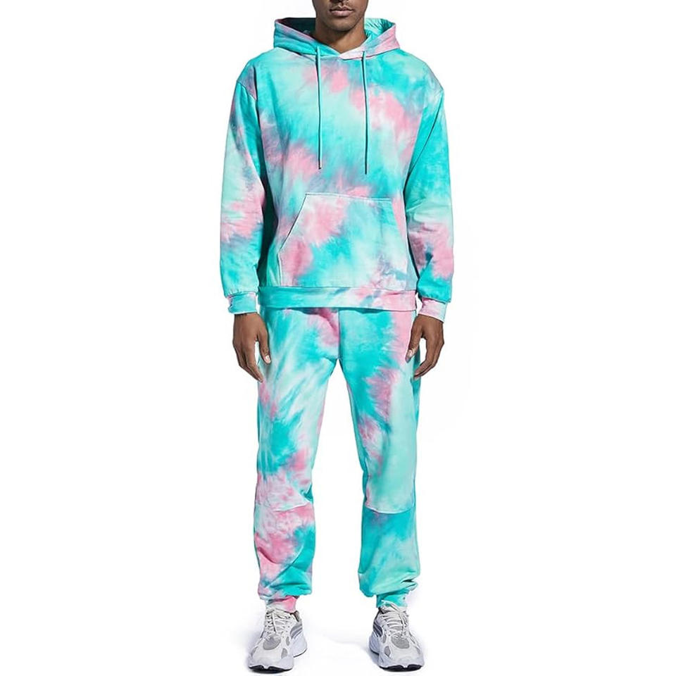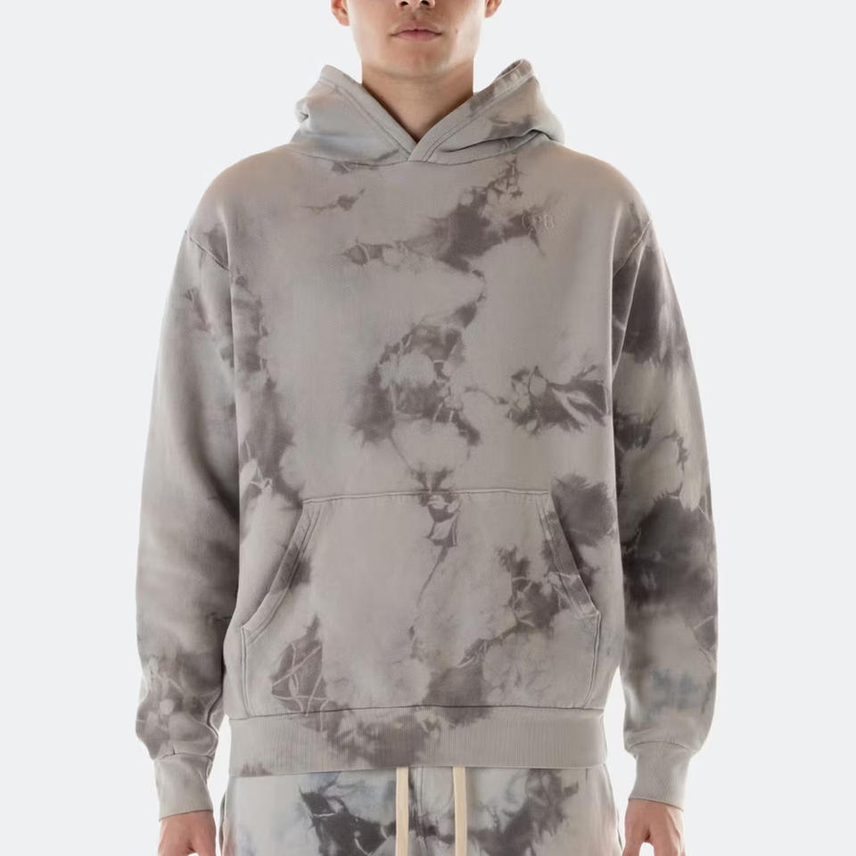 เสื้อฮู้ดมัดย้อมโอเวอร์ไซซ์สำหรับผู้ชายเสื้อสเวตเชิ้ตผ้าฝ้ายสีดำสีน้ำเงินมีโลโก้ซับในสะพายไหล่สไตล์ยอดนิยมสำหรับฤดูหนาวจำนวน2ชิ้น