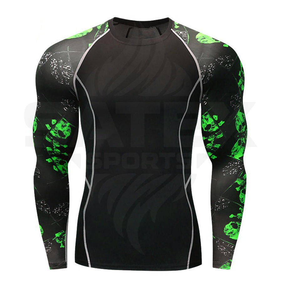 เสื้อรัดกล้ามเนื้อสำหรับผู้ชาย ระบายอากาศ แห้งเร็ว ป้องกันแสงแดด UPF50+ สำหรับ MMA พิมพ์ลายด้วยความร้อน เหมาะสำหรับออกกำลังกาย ฟิตเนส ยิม แบบยาว