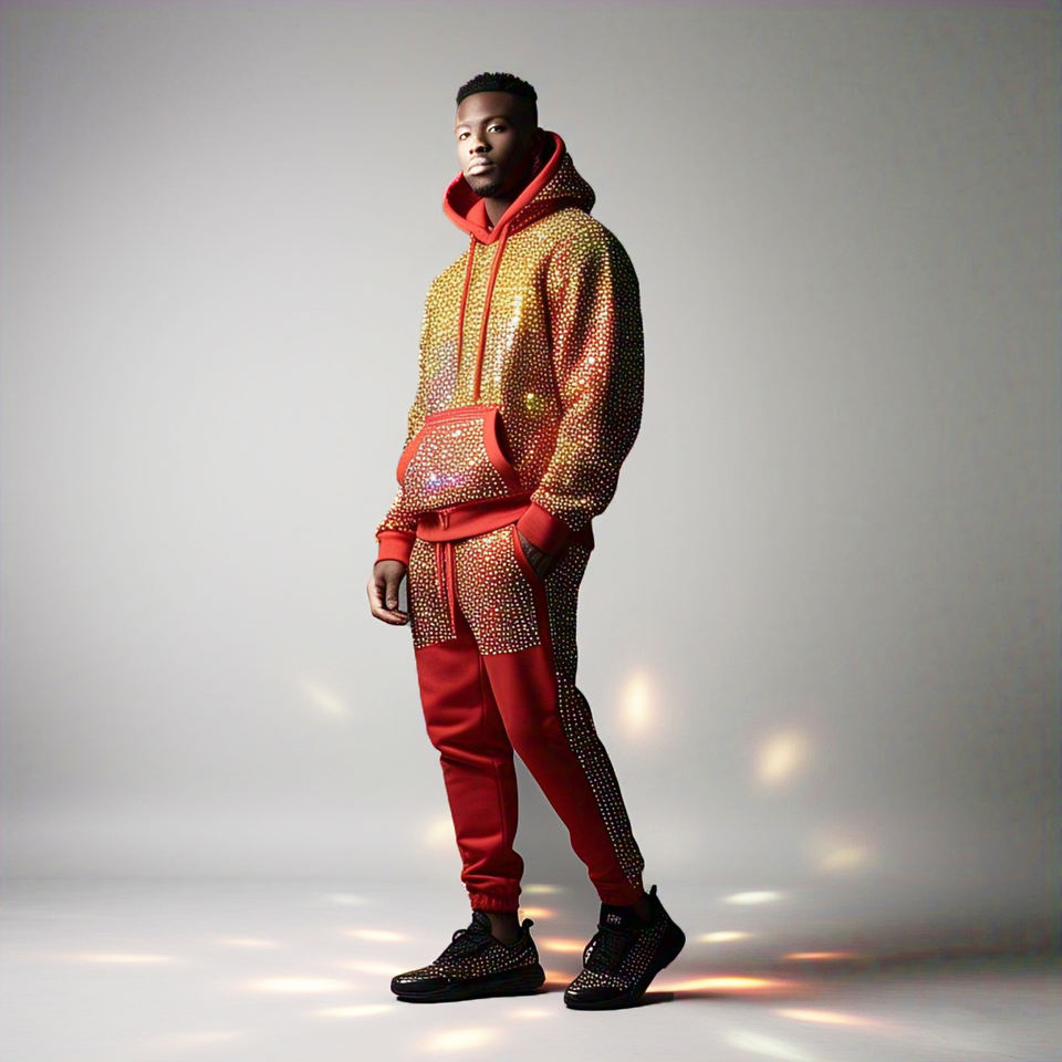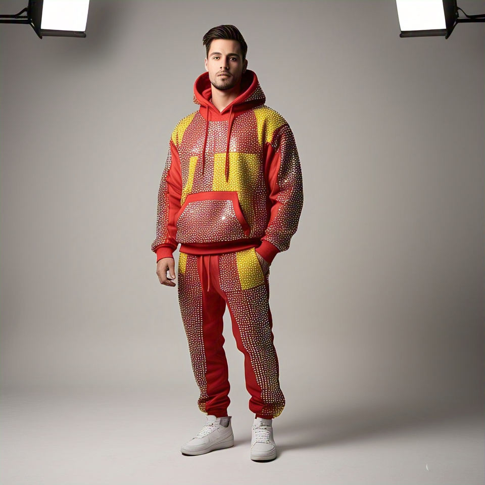 ชุดวอร์มประดับพลอยเทียมสำหรับผู้ชาย