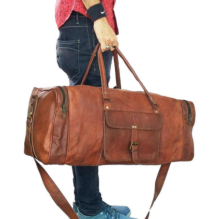กระเป๋าดัฟเฟิลกระเป๋าหนังแท้วินเทจสำหรับผู้ชายเดินทางไปยิมเข็มขัดซิปคุณภาพสูงทนทานทันสมัยใช้ในชีวิตประจำวัน