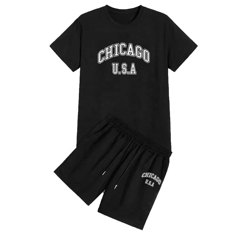 ชุดเซ็ตเสื้อผ้าผู้ชายแบบ 2 ชิ้น สั่งทำได้ พิมพ์โลโก้ได้ ผ้าฝ้าย 100% น้ำหนักเบา สไตล์วินเทจ เอวยางยืด กันยับ