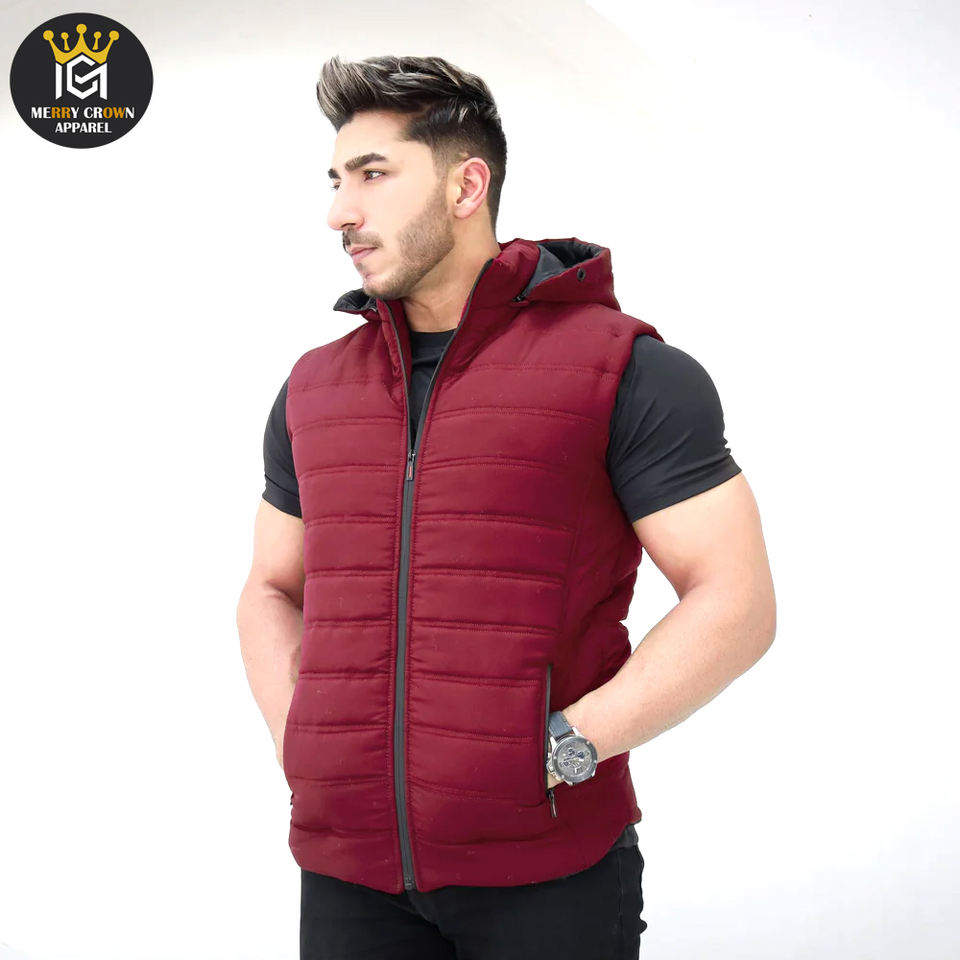 เสื้อกั๊กขนแกะคอปกตั้งแบบซิปทำเองสำหรับผู้ชายเสื้อกั๊กขนแกะแบบอุ่นในฤดูหนาวสีเลือดแดงสไตล์ล่าสุดสำหรับผู้ชาย