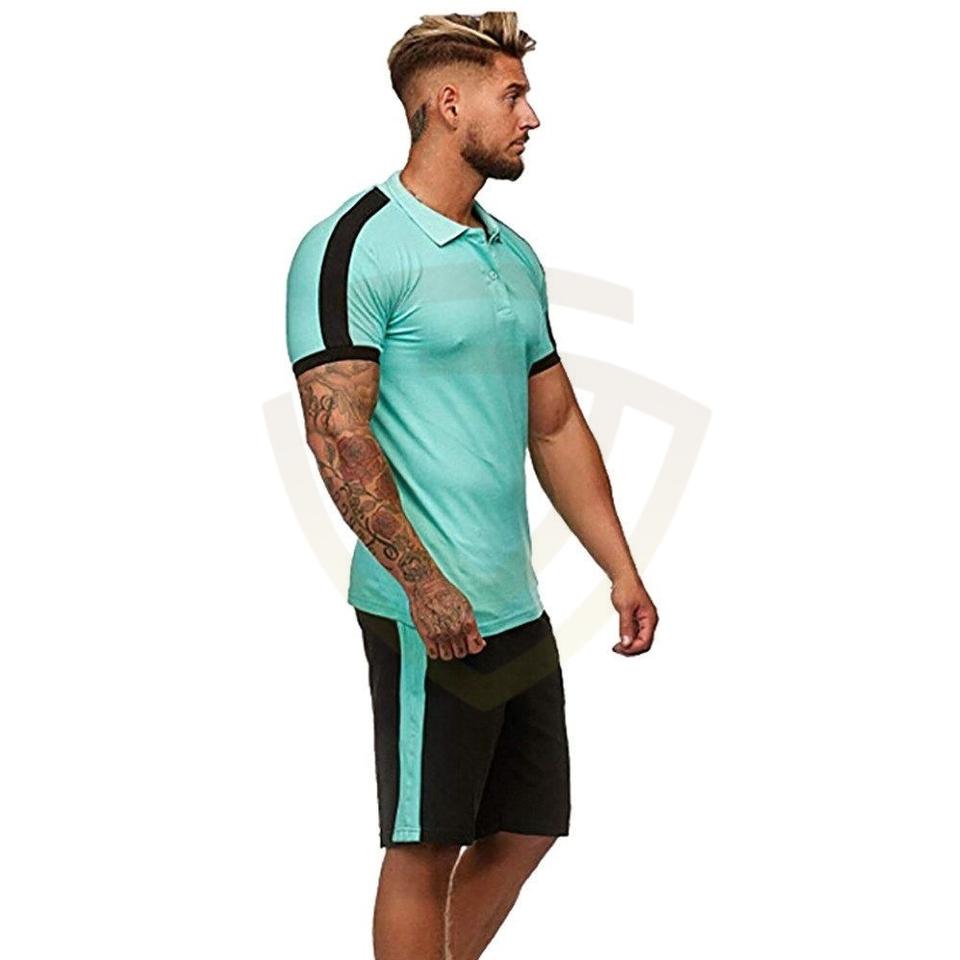 เสื้อโปโลผู้ชายสไตล์สปอร์ตแบบกำหนดเองได้ พร้อมกางเกงขาสั้นลำลองผ้าฝ้าย ชุดเซ็ตเสื้อโปโลและกางเกงขาสั้นสองชิ้น