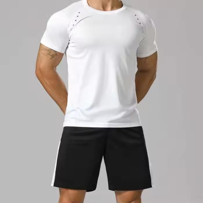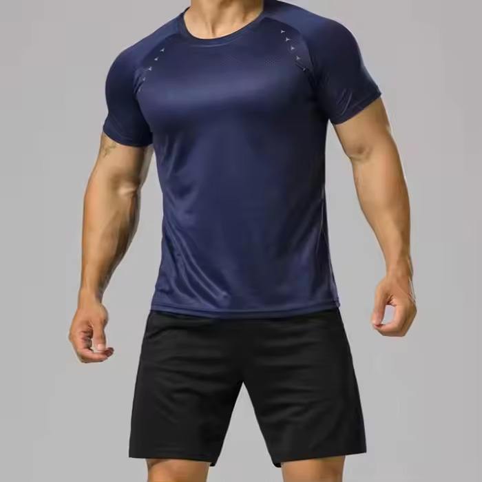 เสื้อยืดกีฬายิมสำหรับผู้ชายเสื้อยืดโพลีเอสเตอร์ระบายอากาศแห้งเร็วสไตล์ลำลองพิมพ์โลโก้ได้ตามต้องการสำหรับฤดูร้อน