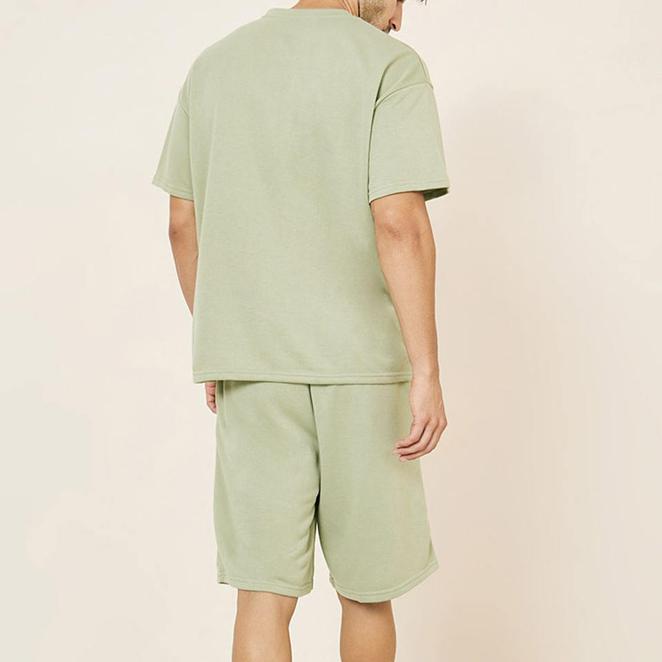 ชุดเซ็ตเสื้อยืดแขนสั้นและกางเกงขาสั้นสีพื้นสำหรับผู้ชาย ออกแบบได้ตามต้องการ เหมาะสำหรับออกกำลังกายในช่วงฤดูร้อน