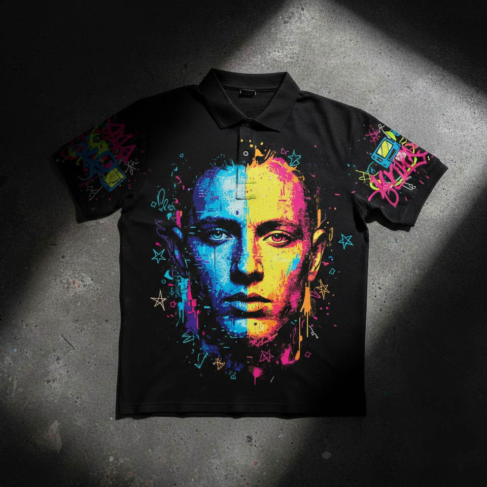 เสื้อโปโล DTG สำหรับผู้ชาย เนื้อผ้านุ่ม ระบายอากาศได้ดี พร้อมลายกราฟิกดิจิทัลแบบกำหนดเอง สำหรับกิจกรรมฤดูร้อนและการออกนอกบ้าน