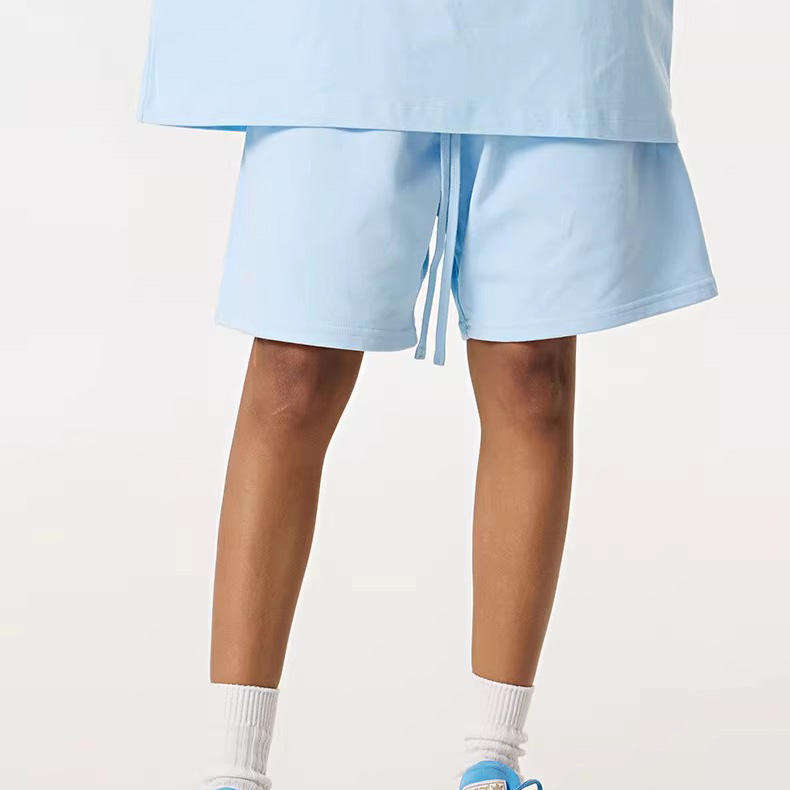 เสื้อผ้าผู้ชายแบบ DTG Sublimation Transfer Print ผ้าฝ้าย 100% เนื้อหนา ทอแบบ Knitted สวมใส่สบาย ระบายอากาศได้ดี 500 ดีไซน์เชือกผูกเอว ทรง Bermuda พิมพ์ลายตัวอักษรด้านหน้า