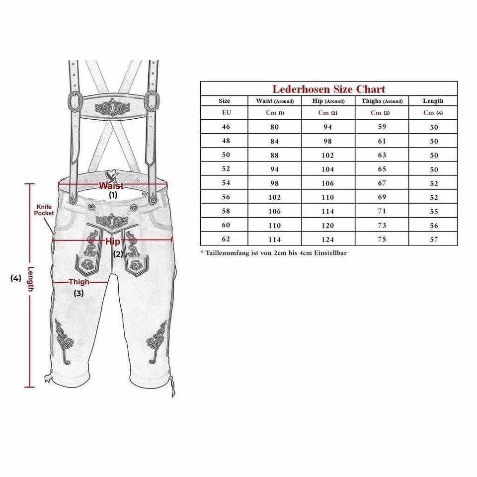 ประเภท:กางเกงหนังแบบดั้งเดิม ความยาวระดับเข่า พร้อมสายเอี๊ยม