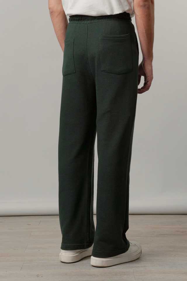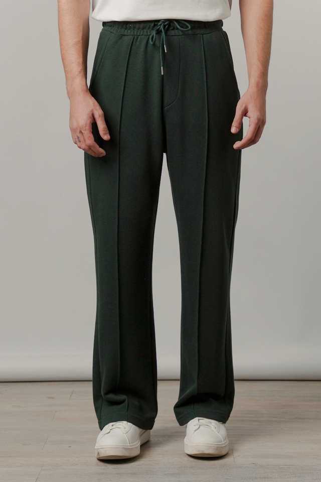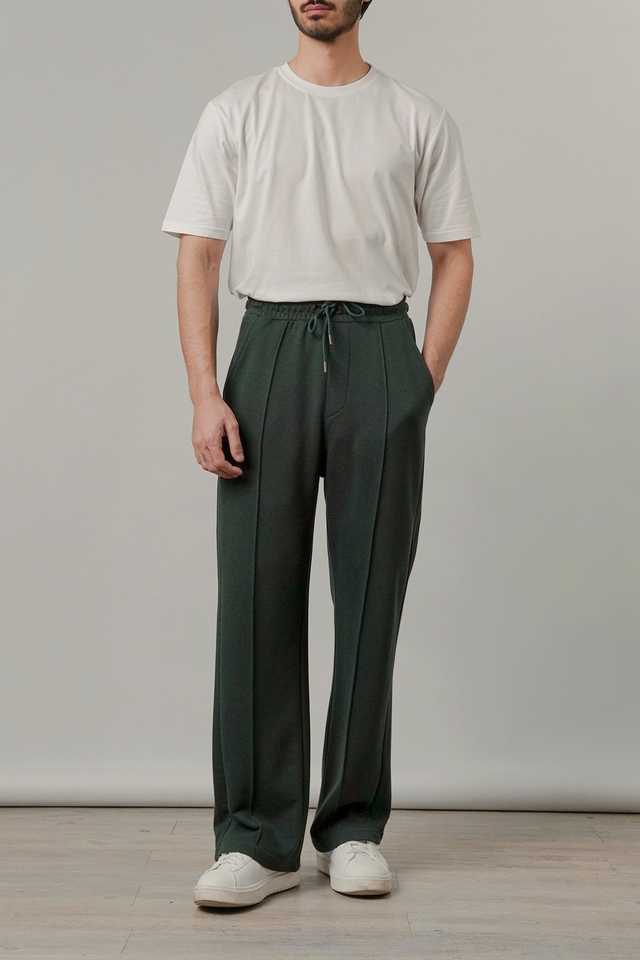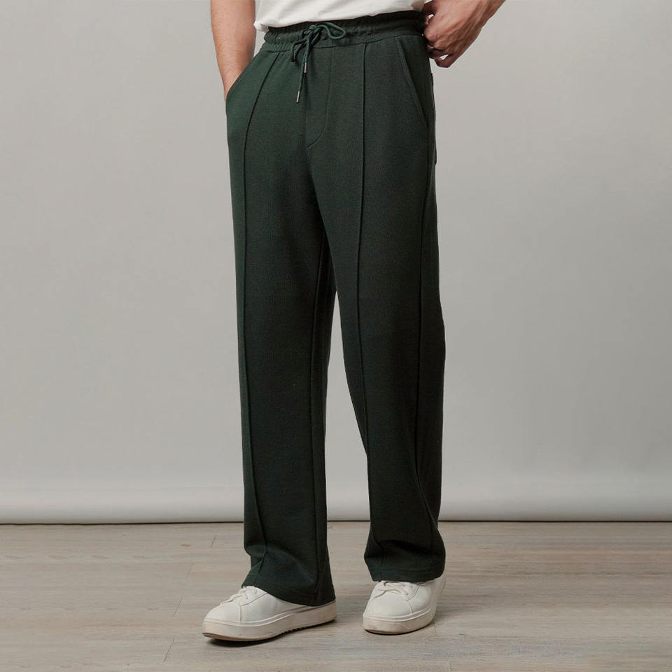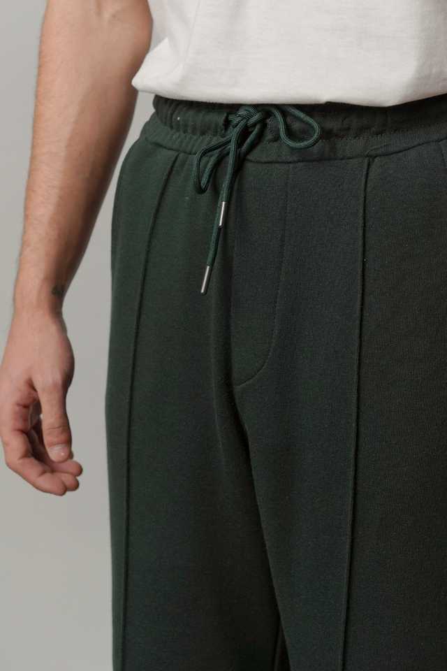 กางเกงจ็อกเกอร์ผู้ชายสีเขียวเข้มแบบจีบ มีเชือกผูกเอว สไตล์ลำลอง เนื้อผ้านุ่มสบาย รับผลิตแบบ OEM/ODM